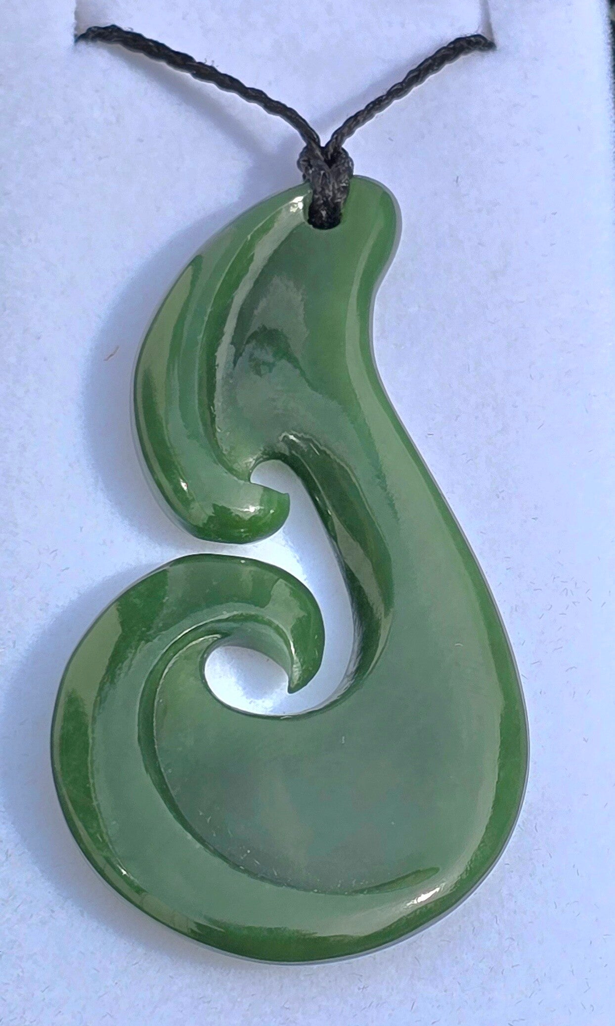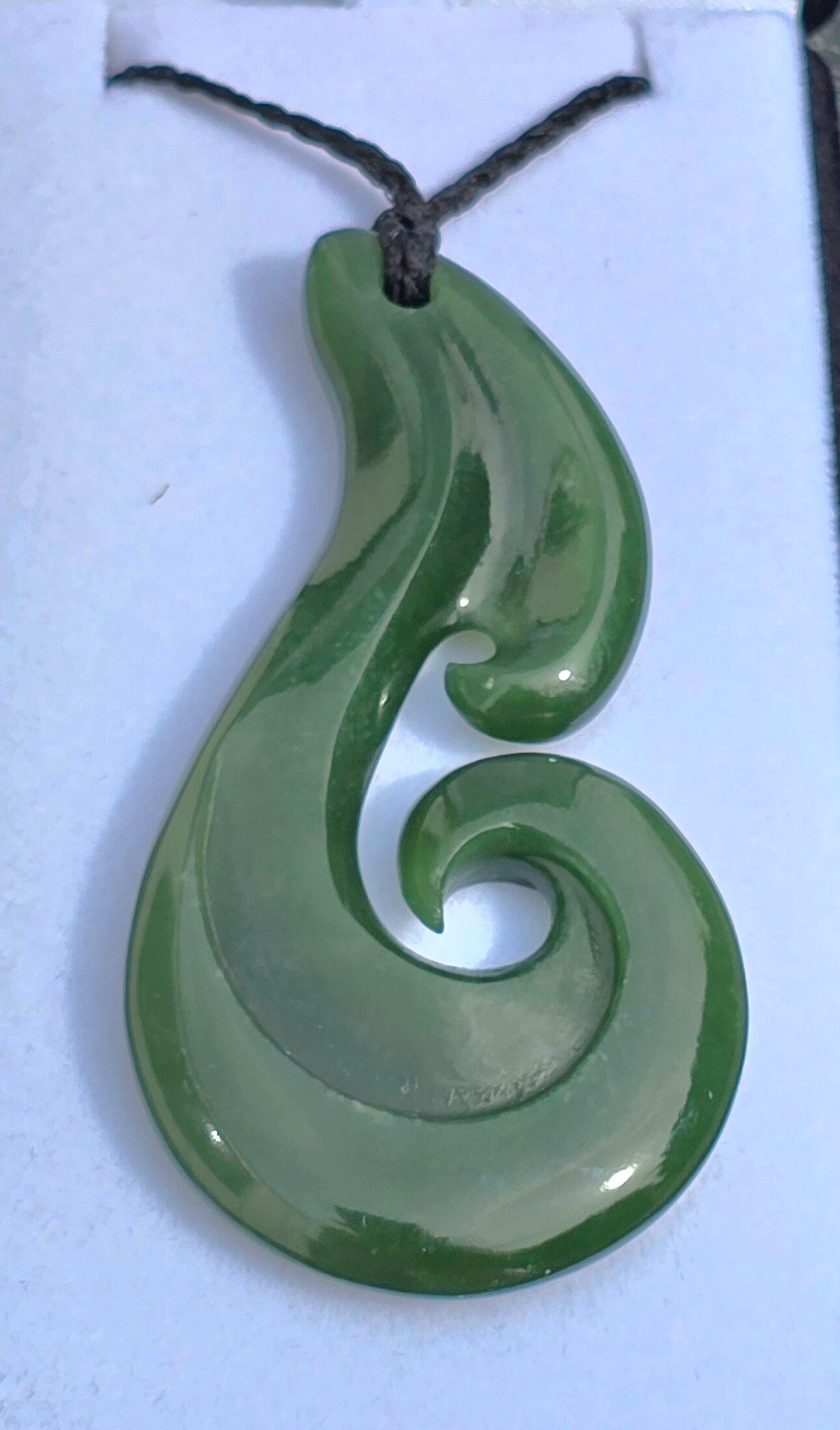 Beautiful freeform kahurangi greenstone double koru pendant.
